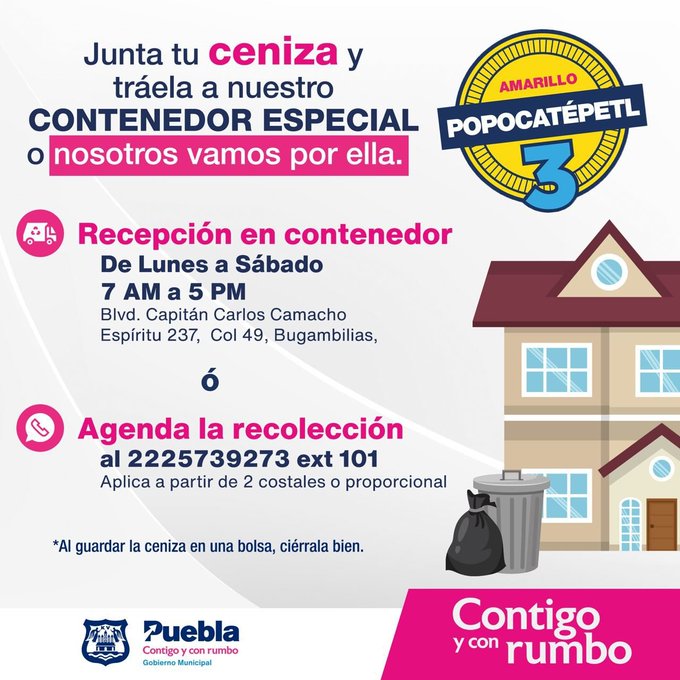 ¿Qué puedes hacer con la ceniza? Bueno, el gobierno municipal de Puebla y proyectos como Compostú abrieron centros de acopio para que las personas donen la ceniza que han recolectado durante los últimos días.
